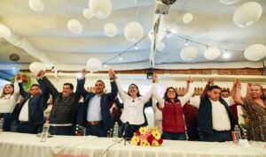 Tepetlaoxtoc, Estado de México 24 Abril 2024. La candidata al senado por la coalición ‘Fuerza y Corazón por México’ Brenda...