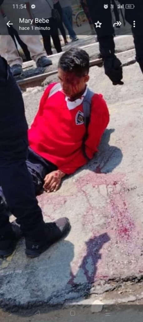 Usa uniforme escolar, por si conoce a sus familiares, para que acudan a auxiliar lo.
