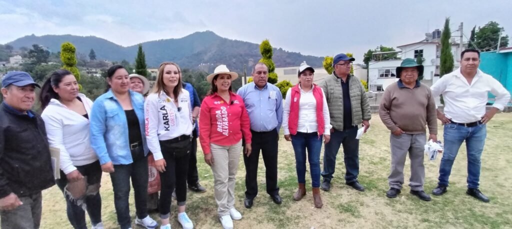 Lerma, Estado de México 22 Abril 2024. La candidata al Senado por la coalición ‘Fuerza y Corazón por México’ Brenda Alvarado comenzó la gira por el municipio de Lerma realizando un recorrido por la población de San Lorenzo Huitzizilapan. La candidata fue recibida con entusiasmo por parte de la ciudadanía, quienes le abrieron las puertas de su casa y escucharon atentamente sus propuestas.